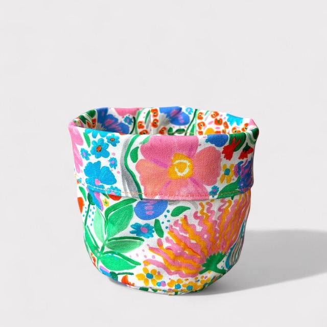**ニュージーランドからの贈り物** 植物も、インテリアも、もっと華やかに。 ビビッドな花柄が目を引くプランターカバーは、置くだけで空間がぱっと明るくなるアクセントアイテム。観葉植物はもちろん、小物入れにもぴったり。布製ならではの柔らかさも感じられるデザインです。 お部屋に彩りを添えるだけでなく、植物好きな方へのプレゼントにも喜ばれます。 【素材】コットンキャンバス100%(内側は耐水) 【サイズ】直径16cm×高さ19cm(折り込んだ場合、14cm程度) 【お手入れ】洗濯可(手洗い推奨) ※商品画像は、撮影環境やご使用の閲覧環境により、実際の色味と異なって見える場合がございます。予めご了承ください。 ▶オーナーの旅日記 ビビッドなカラーと個性的なデザインが特徴のショップで出会ったこのアイテム。色とりどりの花が咲き乱れるようなそのデザインは、きっと家にひとつ置くだけで空間を彩ってくれることでしょう。