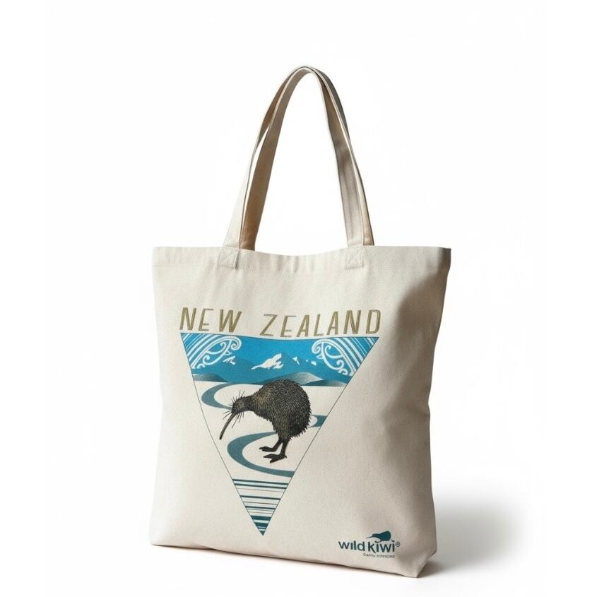 ニュージーランドの国鳥、キウイを描いたトートバッグ。